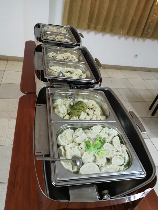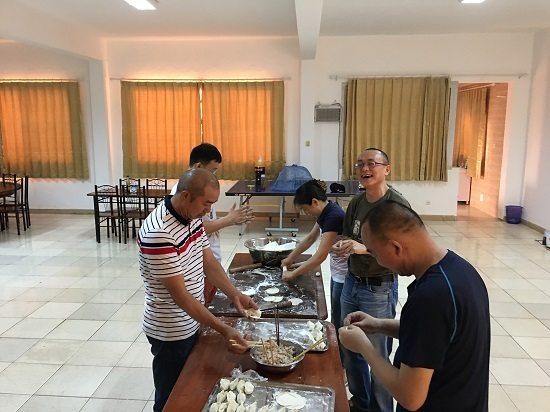 公司同事来自五湖四海,不乏和面擀皮的好手。发好的面团柔软洁白,被擀得圆而薄。边讨论着最近身边发生的趣事和手头的工作,边填入调好的肉馅,一个个饱满的饺子便挺着讨喜的小肚子被摆满盘。剩下的面团擀平,切细煮沸,配上西红柿鸡蛋便是喷香的打卤面;落上葱花煎至金黄是酥脆的葱油饼,总不会浪费。