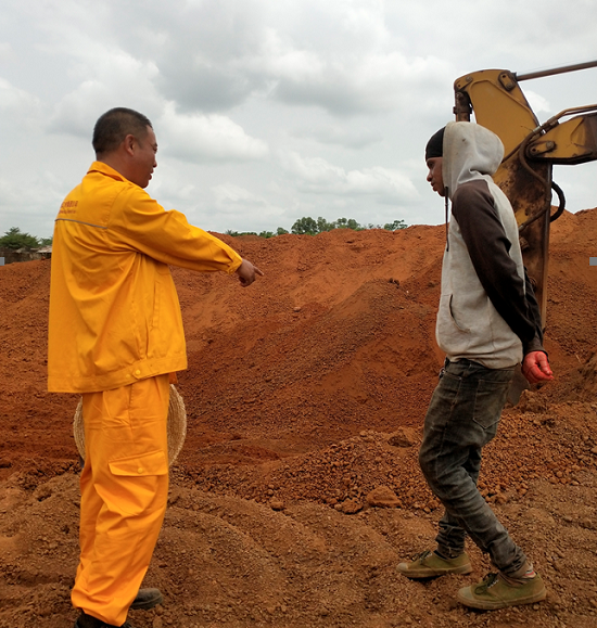 冯模军,土方工程师,为中国地质工程集团几内亚分公司服务已经有六年了,也曾在其他非洲国家工作过,已经算得上老非洲人了,工作经验丰富并能得到大家的一致好评,目前在中地集团几内亚分公司高亚沥青公路项目负责所有土方作业和机械设备。 工作期间,他严格执行:几内亚国家和政府颁发的规范、规章制度、验收标准,施工图及有关技术要求,积极配合项目经理组织施工和验收,并对所管工程项目的安全生产负直接责任;做好施工日记和自检、互检、隐蔽验收检查等的签证及质量记录,保证在施工过程中可追溯;认真向工人班组进行质量技术和安全技术交底,不违章指挥,对因失职或交底不清造成的事故负责;对进场材料的质量严格把关;配合项目经理,及时了解、提出、解决项目施工过程中出现的问题;搞好安全生产,发现问题并纠正,能自己解决的问题,绝不麻烦他人。 正因为他的“积极、勤奋、诚恳、务实”,工作产量和质量基本都能得到保证,真正做到了为项目分忧,为企业创造盈利并为企业在几内亚赢得口碑做出了一份贡献。 冯模军同志在红土料场指挥施工 冯模军同志在签收料单 冯模军同志与当地的工人朋友