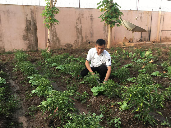 马里大厨傅杰,2016年起在分公司工作至今,工作态度始终如一,勤勤恳恳,定期询问领导同事对菜品意见,不时创新改进,充分保障了分公司饮食水平和安全。 傅杰同志对马里当地员工的管理亦十分到位,厨房帮佣与菜地帮工的工作安排有条不紊,并耐心教授当地员工制作中餐与各式面点。在面对接待活动时能安排得井井有条,圆满完成了多项接待任务。 马里大选期间,分公司基地被指定为华人华侨安置点,傅杰同志认真准备,储存物资,热情接待了前来安置的同胞。基地装修期间,则配合施工安排,分配好人员用房,使装修对员工的影响尽量降低。 除了厨房工作,傅杰同志还开辟了菜园种植了果蔬,为基地餐饮提供了更多绿色放心果蔬,让领导同事在公司用餐也能吃到家的味道。 每日用餐都精心准备,日常的坚持,更见可贵。