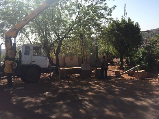 ?????????????????????????????????????????????????????????????????????????????????????????????????????????????????????????????????????????????????????????? 2月16日应KOULOUBA地区清真寺负责人的请求,供水项目派随车吊为其对面公路下坡急转弯路段安放防护墩,很好的解决了交通安全问题。