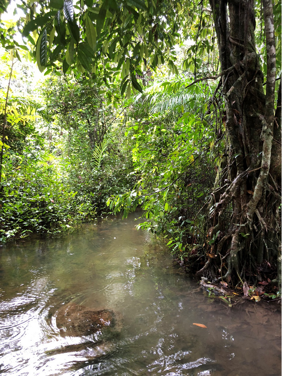 这片土地位置较偏僻,从公路下车后,沿小路继续行进约四公里方可到达。考察当日,大雨倾盆,必经之路积水深约1米,又有巨木藤蔓阻碍,众人不畏艰苦,在当地向导带领下涉水摸索前行,沿着泥泞小道进入需考察的农田范围。