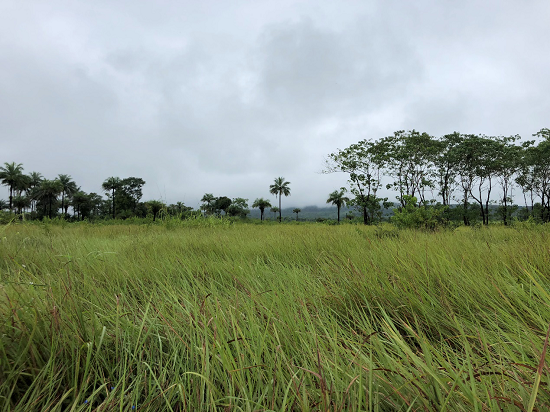 随着小路蜿蜒,终于看清这块土地,四邻青山,背靠绿水,地势平坦,禾草萋萋。除了乡间小道,禾草几乎将所有土地密铺,以至于需要移除一片禾草才能进行土地勘测,经过国总初步勘测,此处的土层深厚,且为肥沃的黑土地,适合种植各种农业经济作物,也适合树木种植。这也是此处的禾草能密集长至一人高的原因。据向导说,本地人会在此处种植稻米及红薯等粮食作物,基本没有食草野生动物破坏作物,只远处山间有些猴类。当地人并不经常除草,考察当日只看到了“草盛豆苗稀”的景象,作物稀疏隐匿在杂草丛中,实为可惜。希望在现代化的设备和铺装道路的帮助下,人们能将这片沃野利用起来,创造充足的经济价值,造福当地人民。