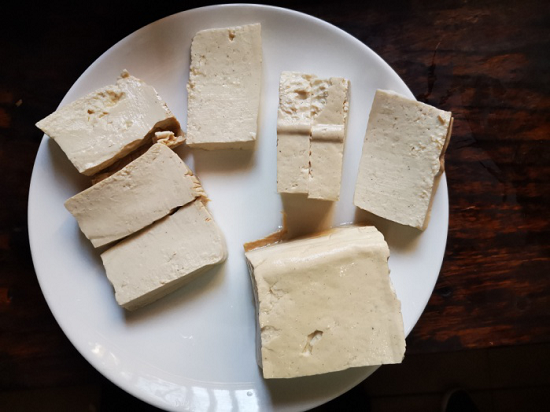 豆腐是中国的传统食材,已有上千年的历史。豆腐以其独特的口感和较高的营养价值,被国人津津乐道。以豆腐为食材做的美味佳肴,更是中国人餐桌上的“常客”。就是这个在国内司空见惯的普通食材,想要在非洲品尝到它,却是件很难的事情。 中国地质工程集团几内亚井队长期在野外工作,没有固定的住所,风餐露宿,工作环境极其艰苦。井队项目员工想吃上一口家乡的豆腐,可以说是遥不可及的事情。元旦放假期间,在井队项目组的号召下,大家集思广益,分工合作,有的人上网查找有关制作豆腐的工艺流程,有的人去当地市场上搜集制作豆腐所需材料。根据大家收集的信息,结合项目上现有资源,制作出了做豆腐所需的简易工具。又经过几个小时的研磨、过滤、煮豆浆、点石膏、压制,最终当洁白、滑嫩的豆腐呈现在大家的面前时,有人禁不住尝了一口,喊道:“对!就是这个味道!”。大家顿时露出了欣喜的笑容,这方鲜美的豆腐,让身处几内亚的井队员工的餐桌上,平添了一道“家的味道”。
